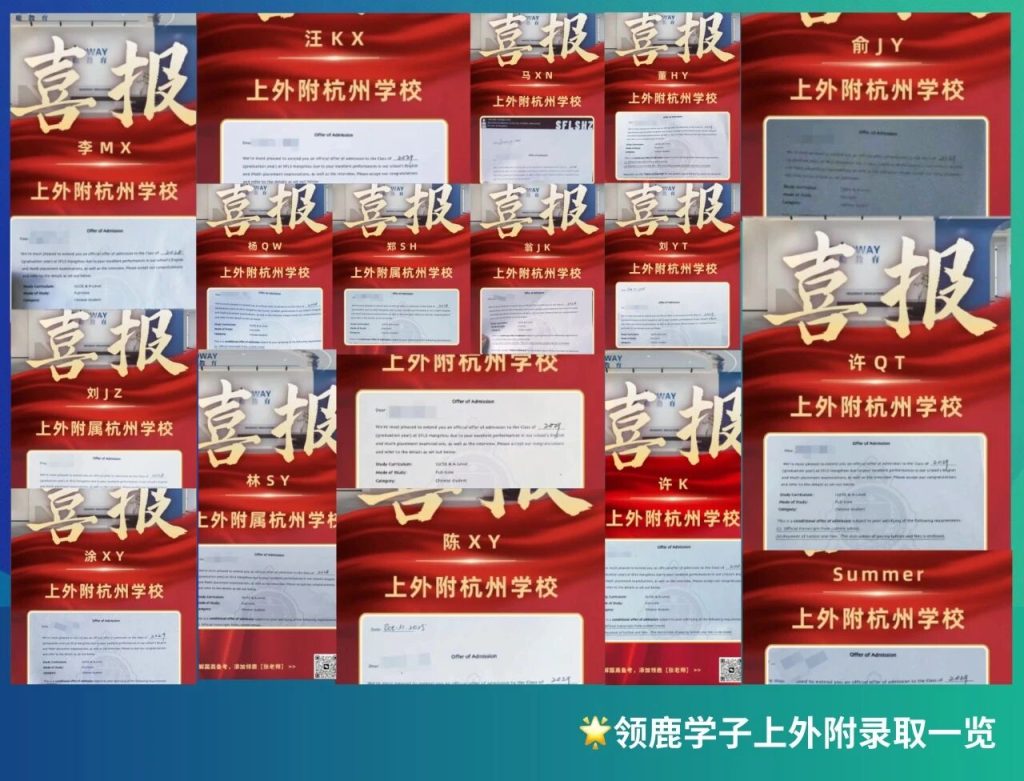 作为上外附杭州官方认可的专场考试合作方,领鹿教育深耕沪杭国际教育择校与备考领域多年,凭借精准的院校研判、实战化的备考指导,已帮助多名学生成功敲开领科、光剑、上外附杭州等顶尖国际学校的大门。