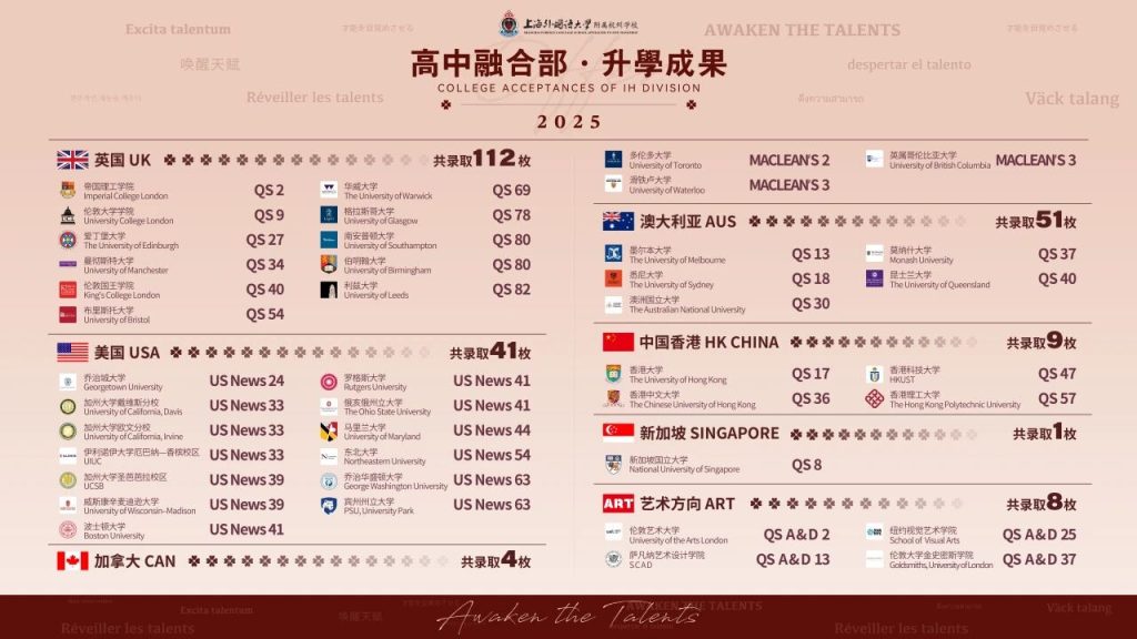 2025年申请季,上外附属杭州学校高中融合部首届毕业生,累计收获220+封OFFER,人均6份以上OFFER,累计获得奖学金超500万元。
