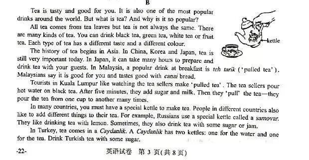 南京中考英语阅读理解B篇则与《Unlock 1》Unit 7 “Food and Culture” 的精读内容如出一辙