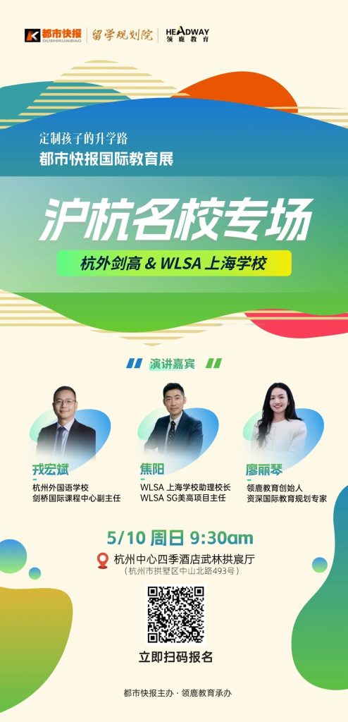 未经允许不得转载:小青藤 » 重磅!5.10沪杭名校杭州线下见面会|杭外剑高&WLSA择校备考全揭秘